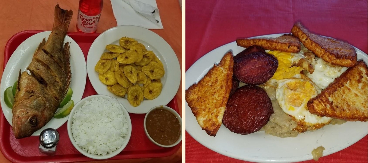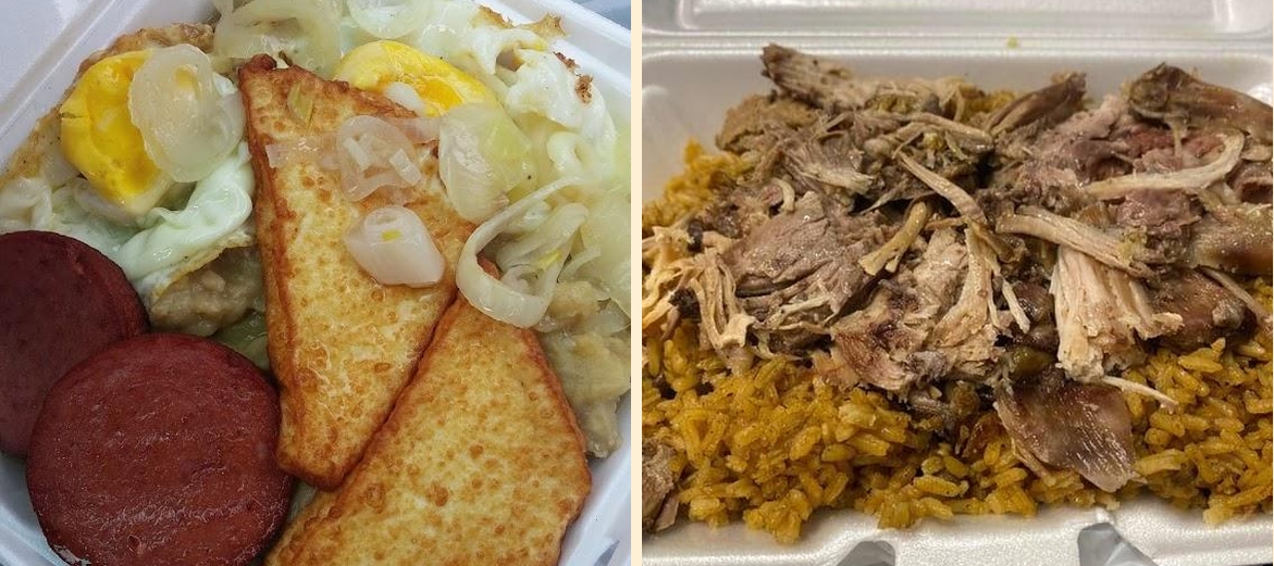 The menu includes a variety of dishes like Mofongo, Bistec Encebollado, and Queso Frito. Delicious desserts round off the meal options. For breakfast, try Avena or Salami Frito.